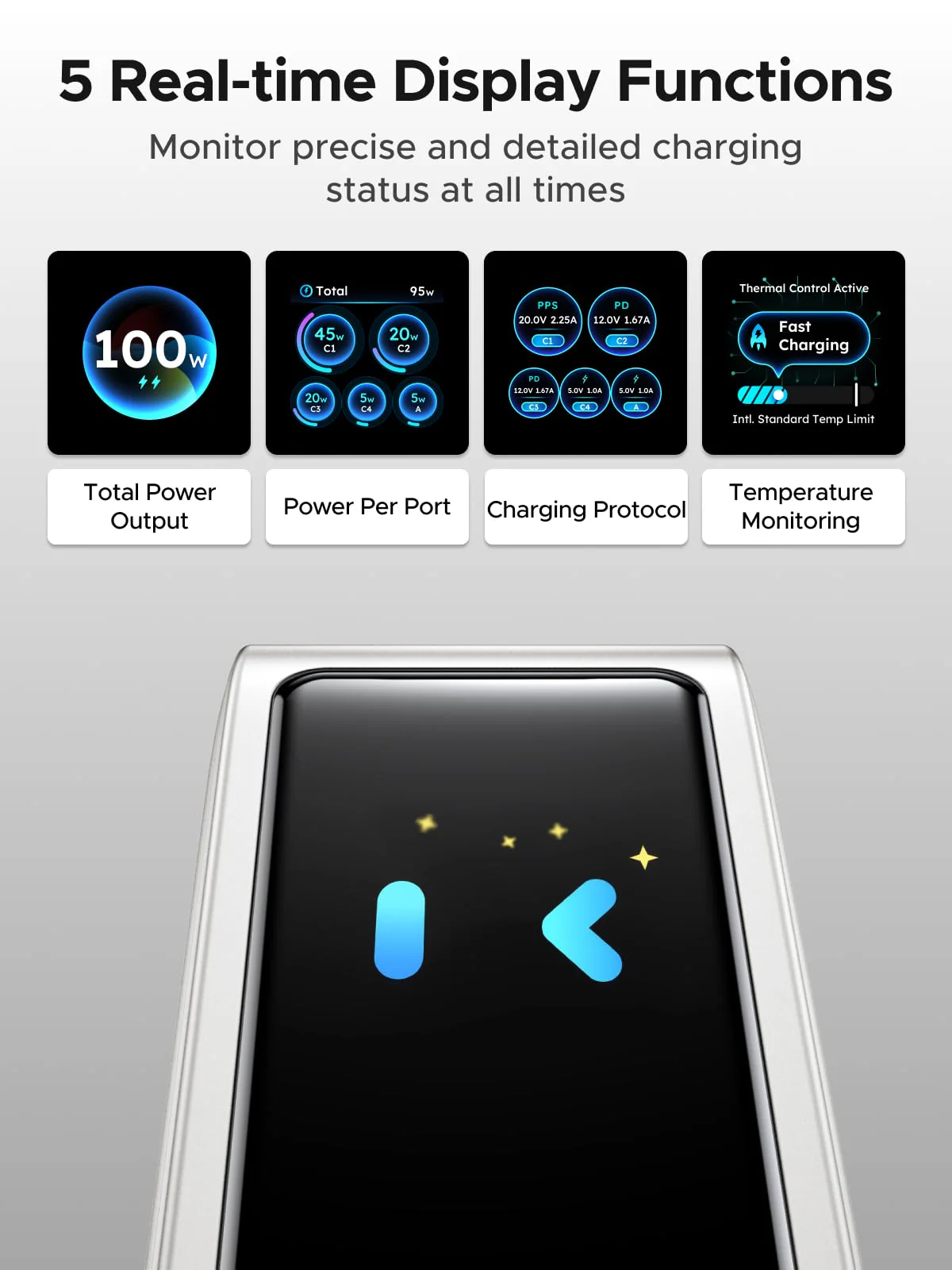 UGREEN 100W USB C Charger, Nexode Pro 5-Port GaN Fast Charger Plug with Smart Display & Touch Control, Compatible with MacBook Pro/Air, iPad Pro, iPhone 17/16/15, Galaxy S24/S23, Steam Deck,etc