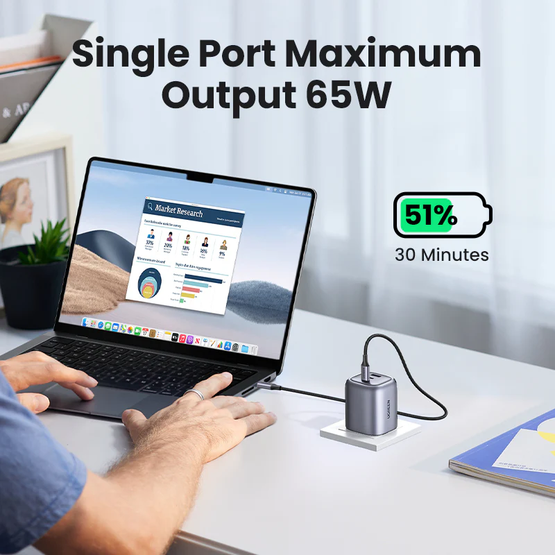 -70%UGREEN Nexode 65W GaN Wall Charger 3-Ports—