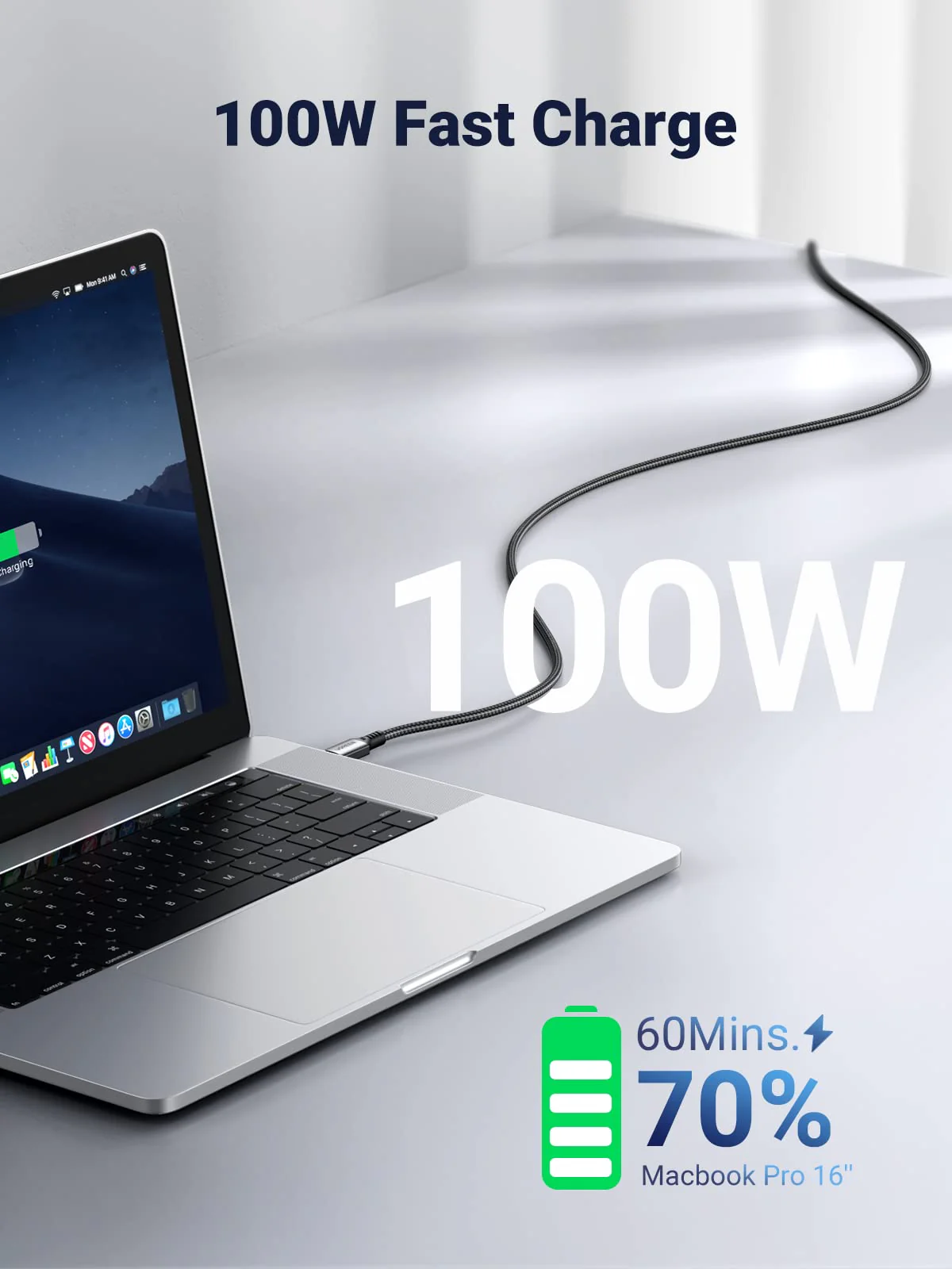 UGREEN USB-C to USB-C 100W 5A Charger Cable (Nylon Braided)—